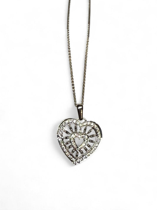 18K White Gold Heart Pendant w/ Chain