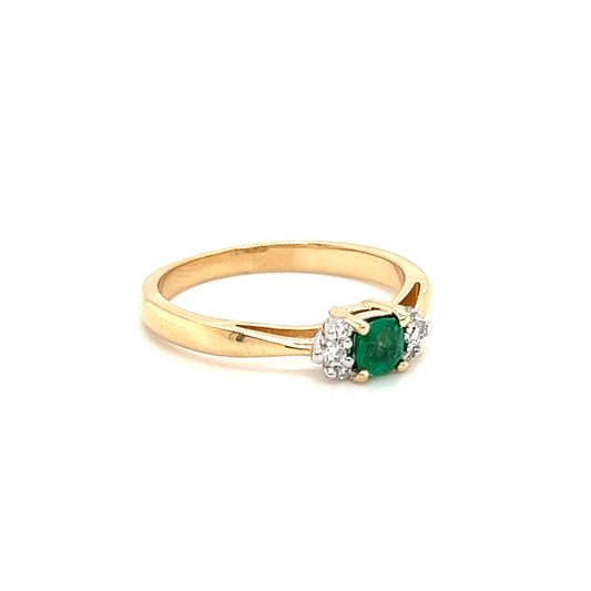 Cushion Emerald Ring in with Six Side Diamonds in 14k Yellow Gold