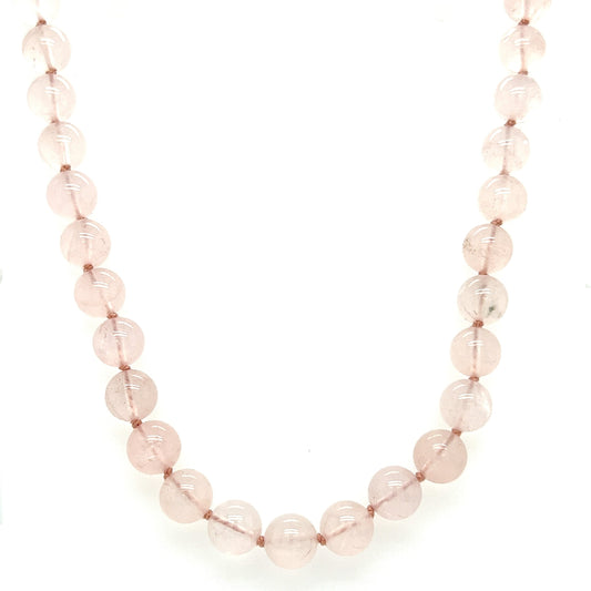 Rose Quartz Beaded Necklace with Sterling Silver Lobster Clasp and Hand Knotted