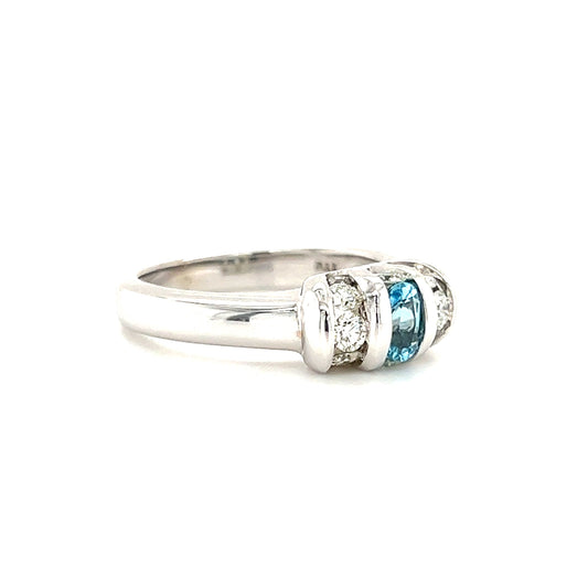Oval Blue Topaz Ring with Side Diamonds in 14K White Gold