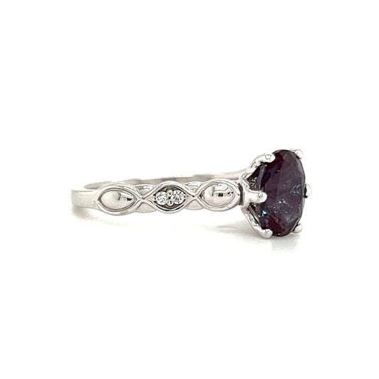 10k White Gold Oval Center Stone Ring with Four Side Diamonds