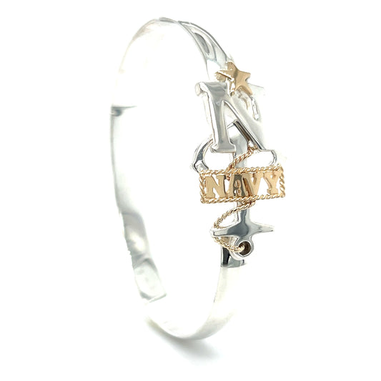 Navy 6mm Bangle Bracelet with 14K Yellow Gold Accents in Sterling Silver