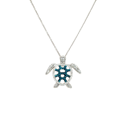 Turtle Necklace with Blue and White Crystals in Sterling Silver