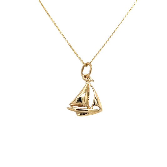 3D Sailboat Pendant with Detailed Sails in 10K Yellow Gold