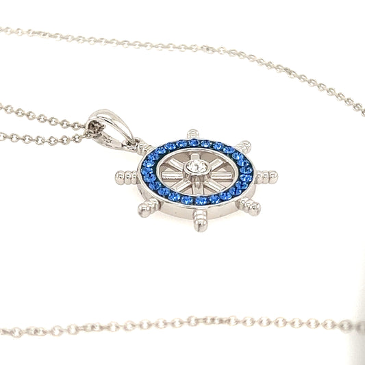 Ship's Wheel Necklace with Blue Crystals in Sterling Silver