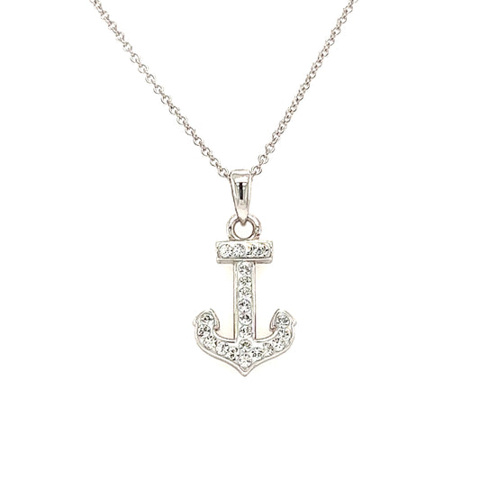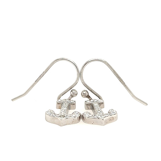 Anchor Drop Earrings with White Crystals in Sterling Silver