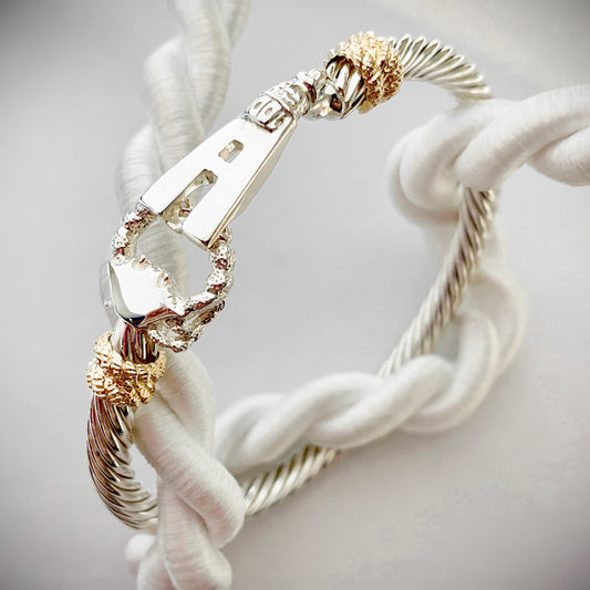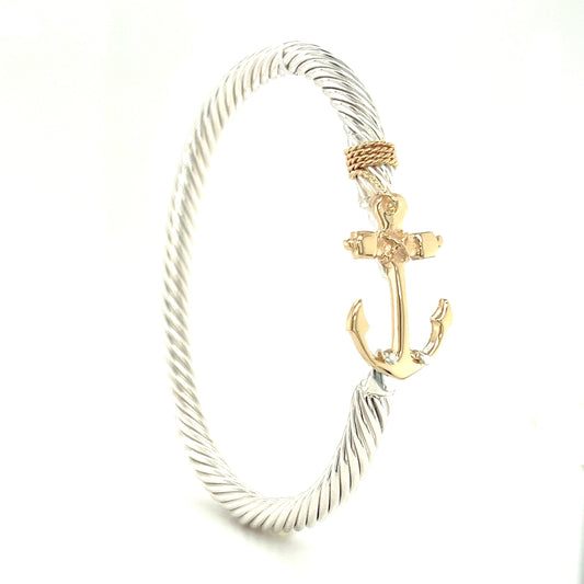 Twisted Cable 5mm Bangle Bracelet with 14K Yellow Gold Anchor and Wrap in Sterling Silver