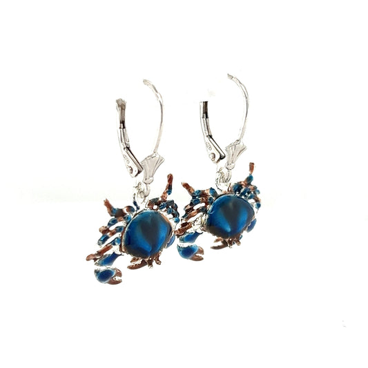 Stone Crab Dangle Earrings with Enameling in Sterling Silver
