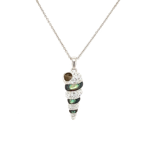 Abalone Shell Necklace with White Crystals in Sterling Silver