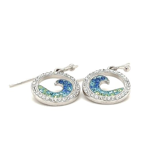 Wave Dangle Earrings with Crystals in Sterling Silver
