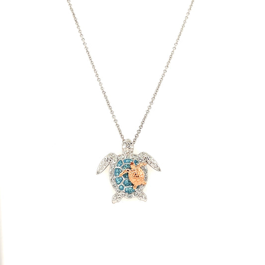Sea Turtle Necklace with Rose Gold Accent in Sterling Silver