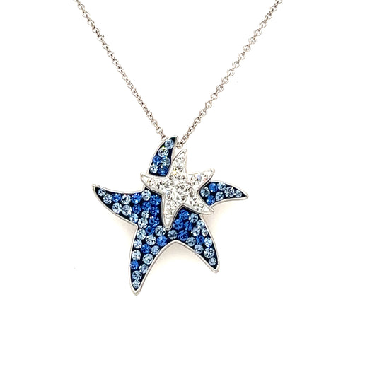 Blue Starfish Necklace with White and Blue Crystals in Sterling Silver
