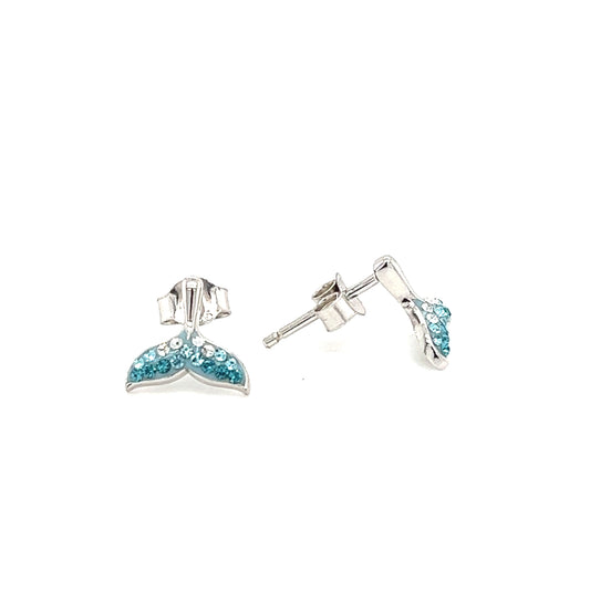 Whale Tail Stud Earrings with Turquoise Crystals in Sterling Silver