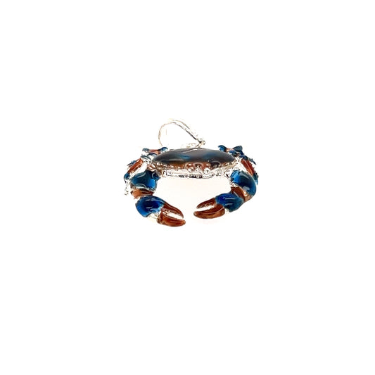 Blue Stone Crab Small Pendant with Enameling in Sterling Silver
