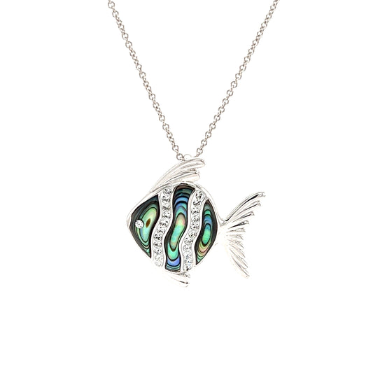 Abalone Shell Fish Necklace with White Crystals in Sterling Silver