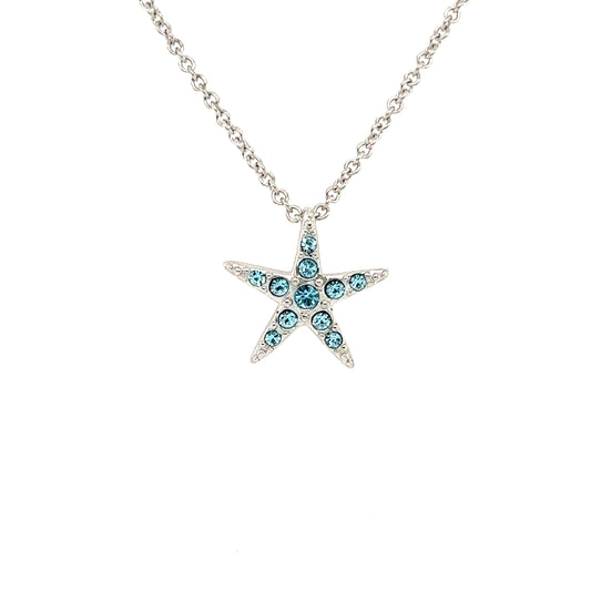 Small Starfish Necklace with Aqua Crystals in Sterling Silver
