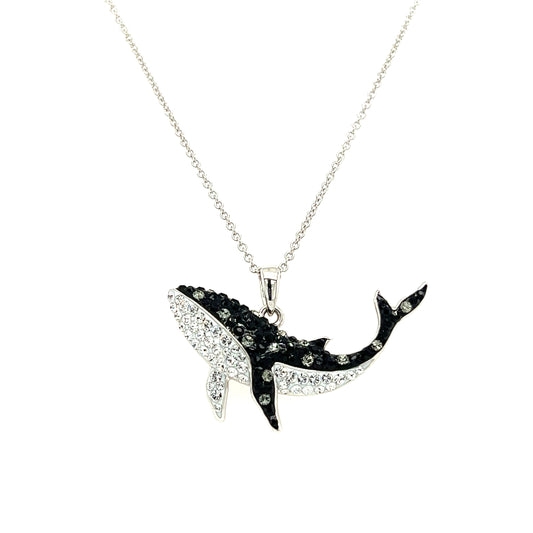 Orca Whale Necklace with Black and White Crystals in Sterling Silver
