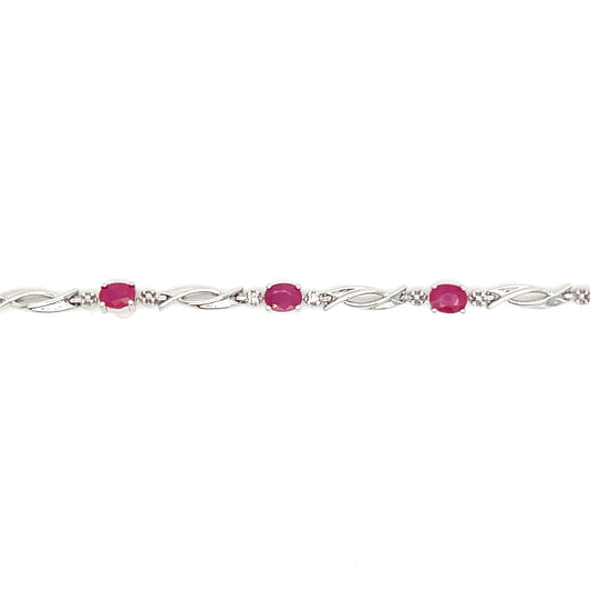 Ruby Bracelet with Diamond Accent in 10K White Gold