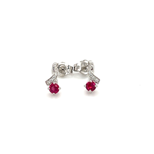 Ruby Stud Earrings with Four Round Diamonds in 14K White Gold