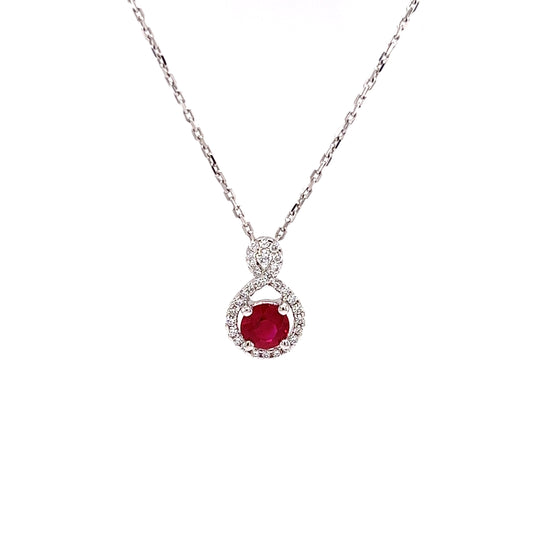 Round Ruby Necklace with 0.15ctw of Diamonds in 14K White Gold