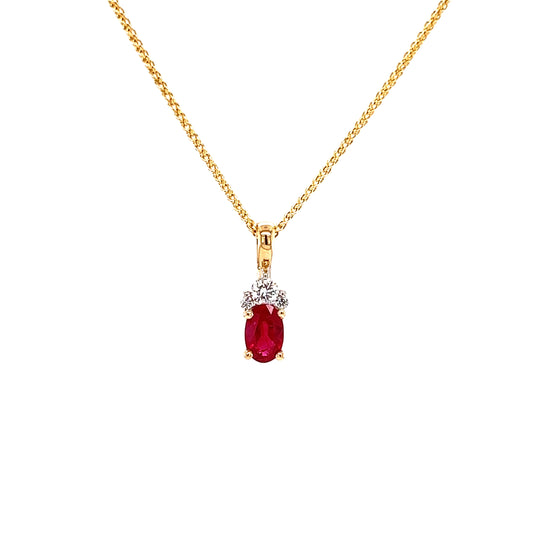 Oval Ruby Pendant with Three Accent Diamonds in 14K Yellow Gold