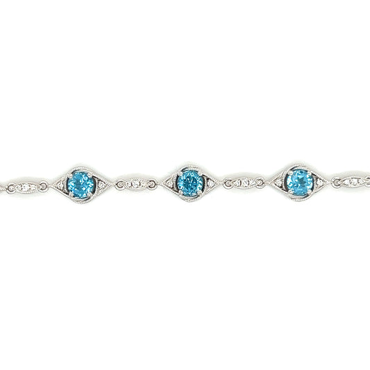 Blue Topaz Link Bracelet with Fifty Diamonds in 14K White Gold