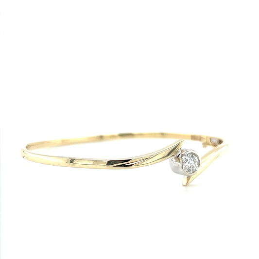 Solid Bypass Bangle Bracelet with 0.5ct of Diamonds in 14K Yellow and White Gold