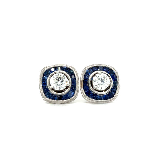 Blue Sapphire Stud Earrings with 0.53ctw of Diamond in 14K White Gold