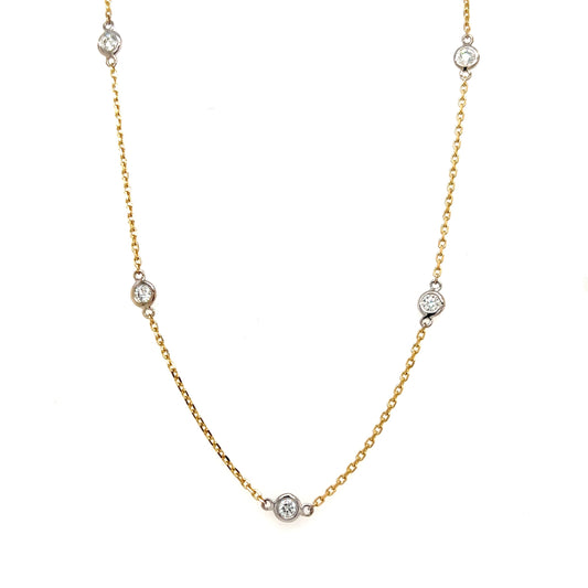 Diamond Station Necklace with 14K White Gold Accents in 14K Yellow Gold