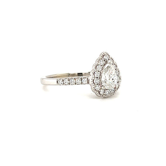 Pear Diamond Ring with Diamond Halo and Side Diamonds in 14K White Gold