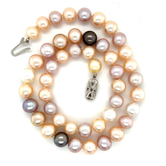 Multicolor Pearl Necklace with Forty-Seven 9.5mm Pearls and 14K White Gold Catch