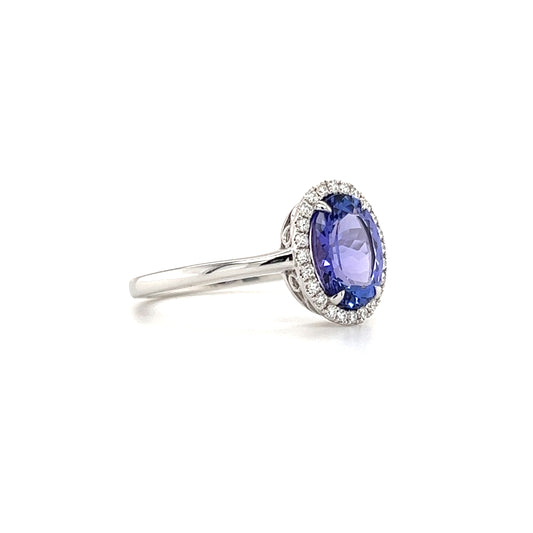 Oval Tanzanite Ring with Diamond Halo in 14K White Gold
