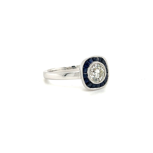 Brilliant Diamond Ring with Sapphire Halo in 18K White Gold