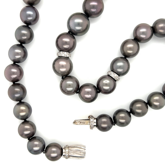 Tahitian Black Pearl Necklace with Four Diamond Rondelle and 14K White Gold Catch