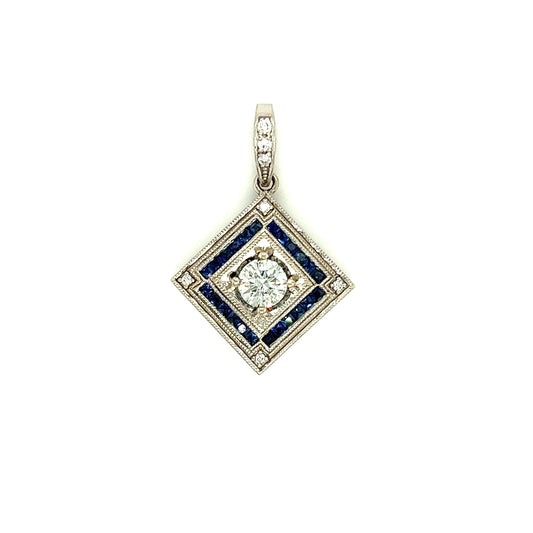 Square on Point Diamond Necklace with 0.64ctw of Blue Sapphires in White Gold