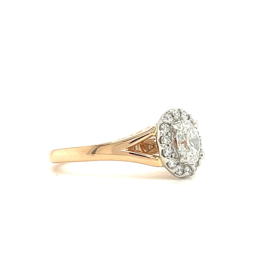 Oval Diamond Ring with Diamond Halo in 14K Rose Gold