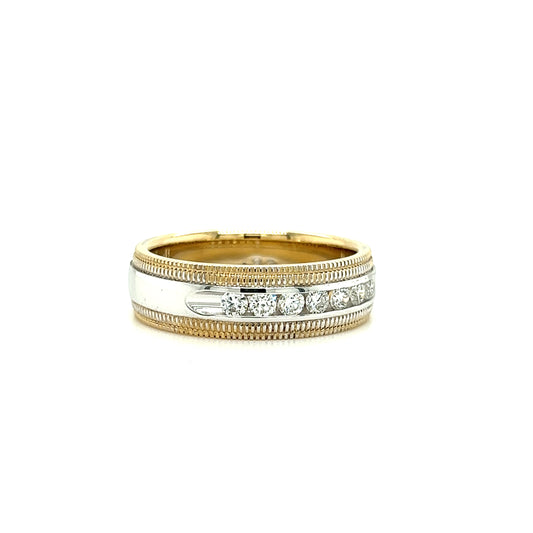 Diamond 7mm Ring with Seven Diamonds in 14K White and Yellow Gold