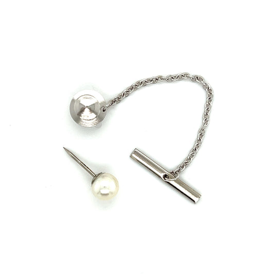 Pin Tie Tack with 6mm White Pearl in Sterling Silver