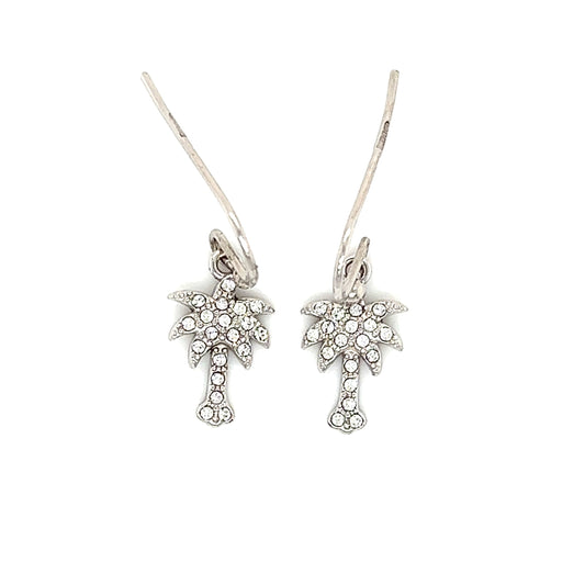 Palm Tree Earrings with White Crystals in Sterling Silver