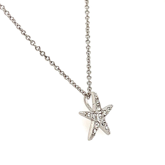 Small Starfish Necklace with White Crystals in Sterling Silver