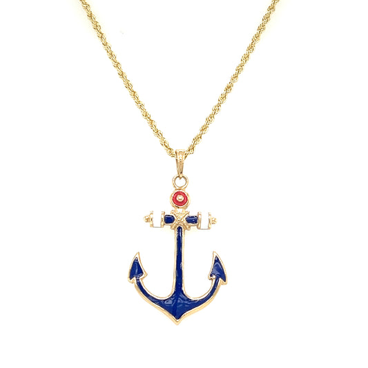 Anchor Pendant with Red White and Blue Enamel in 14K Yellow Gold