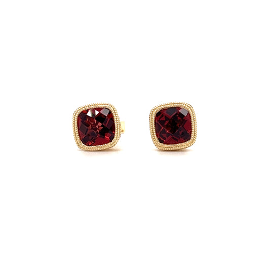 Garnet Stud Earrings with Milgrain and Filigree in 14K Yellow Gold