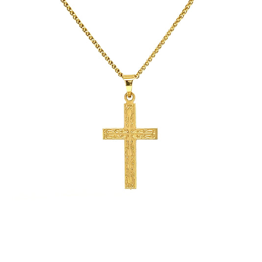 Large Etched Cross Pendant in 14K Yellow Gold