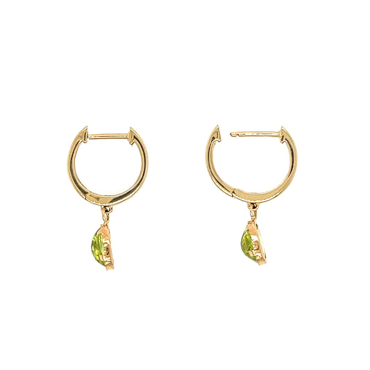 Oval Peridot Dangle Earrings in 14K Yellow Gold
