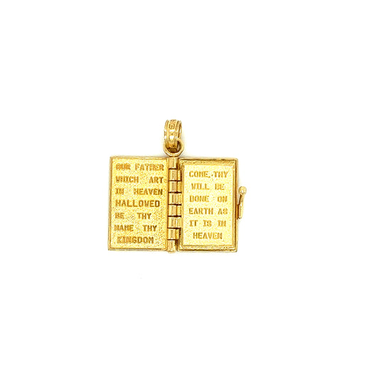 Holy Bible Charm with 3D Lord's Prayer Pages in 14K Yellow Gold