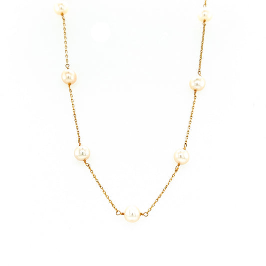 Freshwater Pearl Station Necklace with Fourteen Pearls in 14K Yellow Gold