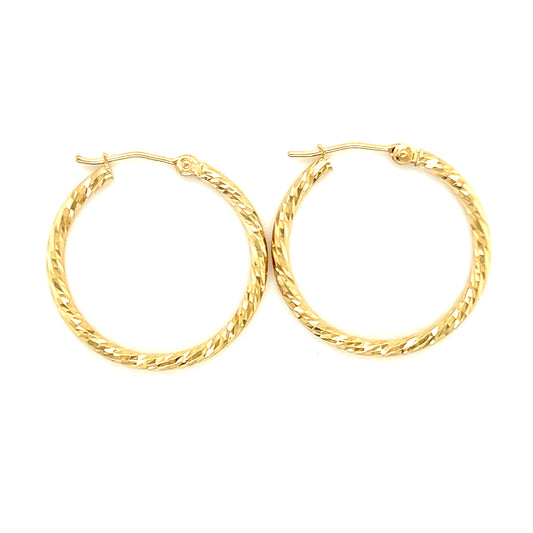 Round Hoop 25.5mm Earrings with Diamond-cut Finish in 14K Yellow Gold