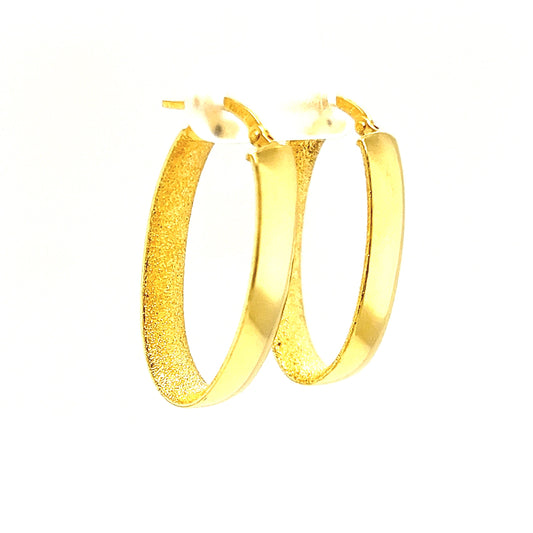 Oval Hoop 6mm Earrings with Stardust Finish in 14K Yellow Gold