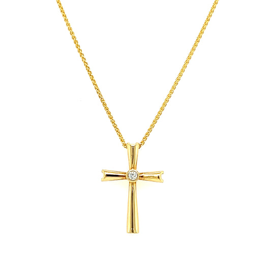 Solitaire Cross Necklace with One Diamond in 14K and 10K Yellow Gold
