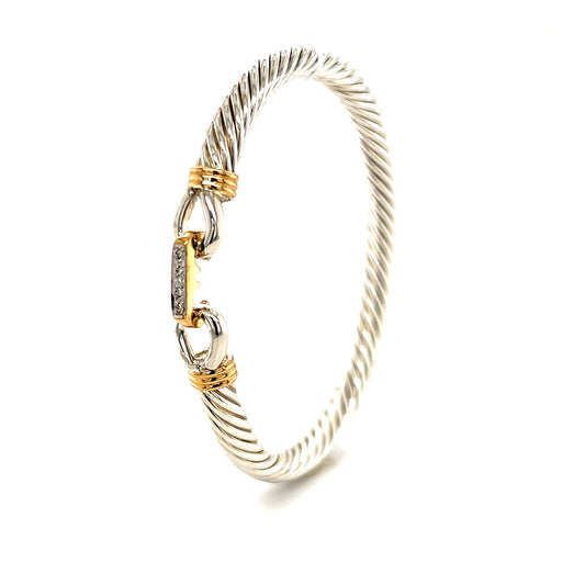 Twisted Cable 5mm Bangle Bracelet with Diamond Catch and 14K Yellow Gold Wraps in Sterling Silver